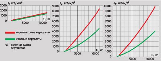 Рис 2. Моменты инерции соосных и одновинтовых вертолетов