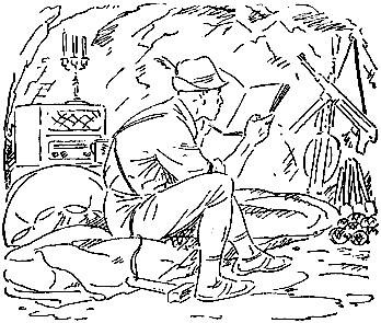 Владик опомнился. Надо известить Индру, что все хорошо!.. Он осмотрелся и взял из мешка пустую консервную банку. Потом поискал глазами какой-нибудь обрывок бумаги. На приемнике лежала стопочка аккуратно нарезанных пожелтевших листков.
