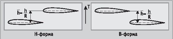 Испытания показали, что оптимальной конфигурацией винта является Н-форма, когда впереди идет нижняя лопасть. При этом существует диапазон угла «ножниц» между лопастями, оптимальный для получения наибольшего прироста силы тяги. Для h=h/R=0.074 это =45–60°. И наоборот, как видно из графика, минимальная тяга получена при расположении пар лопастей одна над другой — схема «биплан». В этой компоновке падение величины тяги относительно тяги винта при ортогональном. расположении лопастей составило более 20 %. Очевидно, что в этом случае проявляется отрицательное индуктивное влияние лопастей друг на друга.