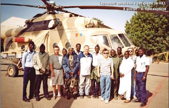 Контракт на поставку в Чад двух вертолетов Ми-17 был подписан на КВЗ в ноябре 2002 года, а с января 2003 вертолеты начали работать в этой стране. По условиям контракта завод в течение года должен обеспечивать гарантийное техническое обслуживание своих машин. К нашему приезду в июне прошлого года первая команда специалистов КВЗ со своими обязанностями успешно справилась и благополучно отбыла домой, передав эстафету нам: «командиру» — зам. начальника сборочного цеха КВЗ, специалисту по конструкциям и общей инженерной части Алексею Михайловичу Просвирякову, специалисту по навигационному оборудованию Дамиру Давлетшину, специалисту по двигателям из Запорожья (на Ми-17 стоят двигатели компании «Мотор Сич») Александру Хале и мне, Сергею Муравьеву, в Казани — декану переводческого факультета одного из вузов, а в Чаде — переводчику за все.