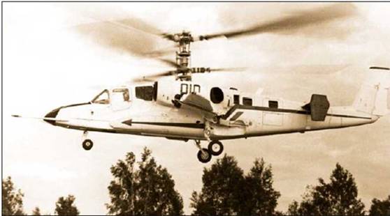 У вертолета Ка-18 (слева направо — ведущий инженер Э.Н. Коротков, летчик-испытатель Е.И. Ларюшин, штурман Н.Х. Файзи, командир экипажа Н.П. Бездетнов)