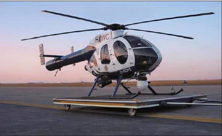 Вертолеты MD 500 эксплуатируются во всех климатических условиях, от Северного полюса (береговая охрана Аляски и Канады) до субтропиков Венесуэлы. Высокое шасси полозкового типа с азотными амортизаторами обеспечивает мягкую посадку на любую неподготовленную площадку с уклоном до 20°, а также безопасное гашение энергии удара в случае аварийной посадки. Кстати, двигатель и редуктор расположены «с умом» (за кабиной под углом в 45°), и в случае критического удара о землю (если разрушится крепление) они даже не «затронут» кабину.