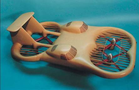 В процессе проектирования возникла необходимость в разработке теории системы «винт в кольце». В качестве математической модели рассматривалась приближенная картина обтекания коллектора на входе в канал, в поперечном сечении которого линии тока представляют собой систему полуокружностей различного радиуса. Разрежение на поверхности коллектора определялось как результат воздействия центробежных сил частиц жидкости, движущихся по линиям тока. Рассматривалось два случая: в первом кольцо состоит только из коллектора, к коллектору подсоединяется цилиндрический канал (диффузор). Во втором случае струя получает полное расширение, и тяга на коллекторе повышается. Предложенная теория позволила рассчитать основные тяговые и мощностные характеристики системы.