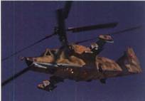 17 нюня 1982 годасостоялся первый полет единственного в мире одноместного боевого ударного вертолета Ка-50 «Черная акула». Планер вертолета включает в себя фюзеляж, крыло трапециевидной формы, хвостовое оперение самолетного типа и трехопорное убирающееся шасси. Основным продольно-силовым элементом планера является балка коробчатого сечения из полимерных композиционных материалов. Лопасти из композиционных материалов имеют торсионное крепление и снабжены противообледенительной системой. Для повышения живучести в вертолете реализован ряд мероприятий, а именно: бронирование кабины летчика, экранирование основных жизненно важных систем, установка протектированных топливных баков, катапультируемое кресло пилота. Отсутствие рулевого винта увеличивает энерговооруженность и уменьшает моменты инерции вертолета. Это позволяет выполнять боевые маневры в минимальном объеме пространства за кратчайшее время. Аэродинамическая симметрия соосной схемы несущих винтов обеспечивает штурмовику простую технику пилотирования, что в сочетании с низким уровнем вибраций уменьшает ошибки прицеливания и начальное рассеивание средств поражения. Серийное производство Ка-50 развернуто на ААК «Прогресс»,