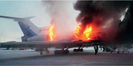 Вверху: 2011 г. начался с пожара на борту Ту-154Б-2 авиакомпании «Когалымавиа» в Сургуте (трое погибших)