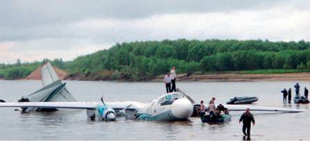 Внизу: в результате аварийной посадки Ан-24РВ авиакомпании «Ангара» на реку Обь в Томской области 11 июля 2011 г. погибло семь человек