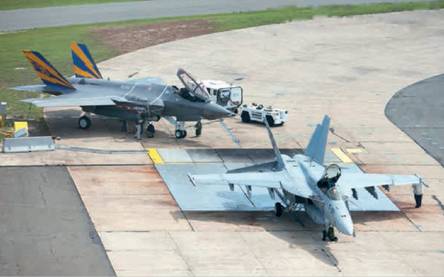 Совместные испытания F-35C (CF-1) и F/A-18E по оценке авианосного базирования, авиабаза «Лейкхерст», 13 августа 2011 г.