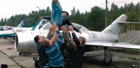 Летные испытания «реанимированного» УТИ МиГ-15 решили проводить на аэродроме РОСТО «Двоевка» под Вязьмой. Когда-то давно здесь дислоцировались такие же самолеты и еще остались техники и механики, «крутившие гайки» на легендарных «МиГах». Сейчас аэродром широко известен благодаря базирующейся на нем знаменитой пилотажной группе «Русь» на самолетах L-39. Для облета и последующих испытаний восстановленного УТИ МиГ-15 пригласили заслуженного летчика-испытателя России Ильдуса Кирамова, в прошлом военного летчика и старшего летчика-испытателя военной приемки КнААПО, с 1989 г. работавшего в ЛИИ им. М.М. Громова, где он проводил большой объем испытательных работ на истребителях и легких самолетах авиации общего назначения. Кстати, именно, Ильдус Кирамов почти четыре года назад, в декабре 2007-го, поднял в небо восстановленный энтузиастами КБ «Современные авиационные технологии» не летавший 45 лет реактивный учебно-тренировочный самолет Як-30, а в феврале 2009-го — и «реанимированный» ими спустя почти полвека вынужденного простоя одноместный Як-32 (см. «Взлёт» № 1–2/2008, с. 72, № 4/2009, с. 48). В этом месяце, 11 октября, заслуженный летчик-испытатель России полковник Ильдус Хасанович Кирамов отмечает свое 60-летие, с чем мы его от души поздравляем.