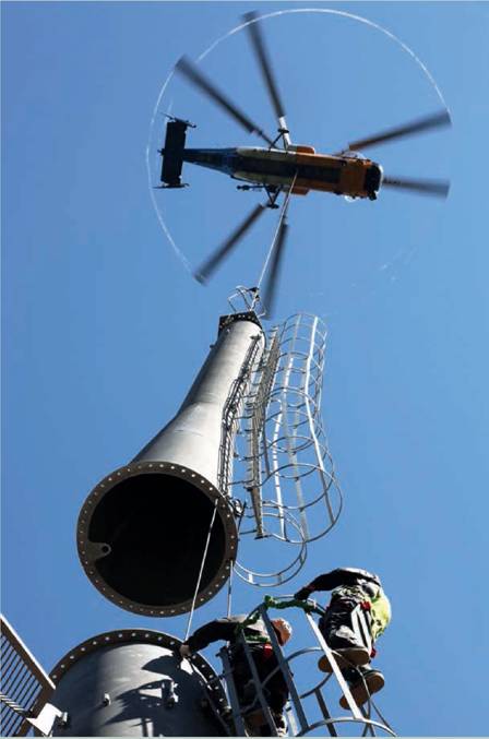 Вертолеты Ка-32 широко применяются для выполнения сложных строительно-монтажных операций. На снимке – вертолет авиакомпании «ПАНХ» на строительстве объектов Олимпийских игр 2014 г. в Сочи