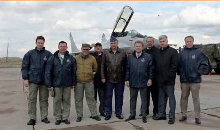 Руководители и летчики РСК «МиГ» с заместителем командующего ВВС РК Уланом Карбиновым перед МиГ-29М2