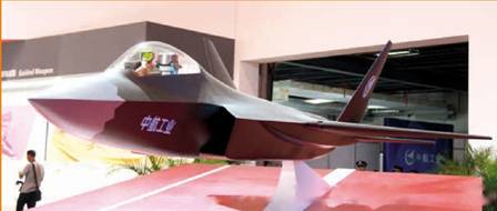 Модель «перспективного истребителя в масштабе 1:4 в павильоне AVIC на Airshow China 2012