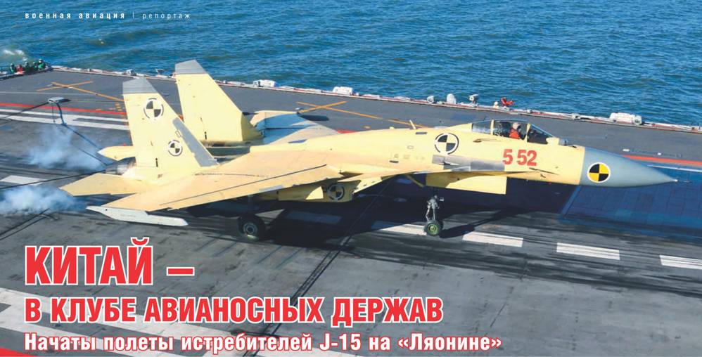 Нынешняя осень ознаменовалась поистине эпохальными событиями для морской авиации и в целом Военно-морских сил Китайской Народной Республики. В ноябре впервые на палубе первого авианосца Поднебесной – достроенного здесь после покупки у Украины незавершенного советского ТАВКР «Варяг» – были совершены посадки и взлеты истребителей корабельного базирования – самолетов J-15, выпускаемых Шэньянской авиастроительной корпорацией (SAC) и являющихся результатом «обратного инжиниринга» отечественного Су-33. Таким образом, КНР на практике доказала, что вступила в элитный клуб стран, обладающих авианесущими кораблями, на которых обеспечиваются полеты современных истребителей.