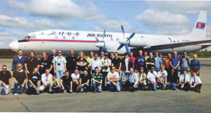 Фото на память: на фоне Ил-18 – автор и 38 остальных участников сентябрьского «авиационного» тура в КНДР