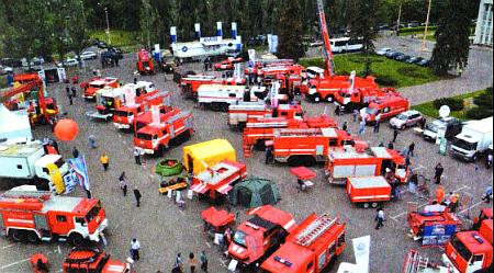 На выставке было представлено много пожарной техники…