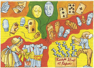Однажды Клара подарила Ему коробку из-под мыла; Подумав, Карл послал в ответ Пустой кулек из-под конфет. Тогда смягчившаяся Клара Послала 2 воздушных шара, А Карл послал ей, подобрев, 3 новых карты масти треф. И с благодарностью от Клары Пришли 5 варежек без пары; Как символ дружбы, Карл в ответ Шлет 8 разных сандалет. Растрогавшись, послала Клара 13 труб для самовара, И, прослезившись, Карл послал 21 коленный вал...Говорят, они стали добрыми друзьями и все время шлют друг другу подарки. И каждый из них, не желая уступить другому в щедрости, прибавляет к своему последнему числу подарков последнее число подарков, полученных от друга. Так и получаются числа Фибоначчи.
