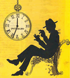 «Штирлиц взглянул на часы. Было 12.33, одна минута до условленного времени. Он не отрываясь смотрел в окно вагона, привычно фиксируя отражения. Стрелка солидных швейцарских часов неторопливо прошла еще круг. Он вздохнул, вынул часы из жилетного кармана и переложил в правый карман ватерпруфа. Это был сигнал.