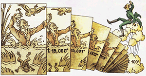 — А вот как: Мюнхгаузен первый раз потянет себя за волосы и нагреет своими движениями лужу на одну тысячную часть градуса. Потом, если лужа не высохла (а она, конечно, и не подумала высохнуть, хоть чуть-чуть и нагрелась), он снова потянет и нагреет лужу еще на одну тысячную часть градуса и так далее. Если у Мюнхгаузена скорость работы, как у рядового компьютера, то не пройдет и секунды, как вода в луже поднимается до 100°С и закипит. Ну, а из кипятка-то, я думаю, он и сам не заметит, как выпрыгнет!