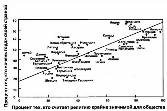 Рисунок 5. Соотношение национальной гордости и значимости религии