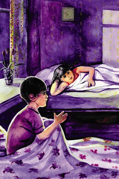 – А ты сначала догони! – закричал Тёмка и понёсся вниз с горки. Я побежала за ним, но догнать не смогла. Выдохшись, я села качели, а Тёмка сел рядом, на горке. Но только я пошевелилась, он спрыгнул и приготовился удирать. Я отвернулась. Тёмка опять залез на горку и говорит: