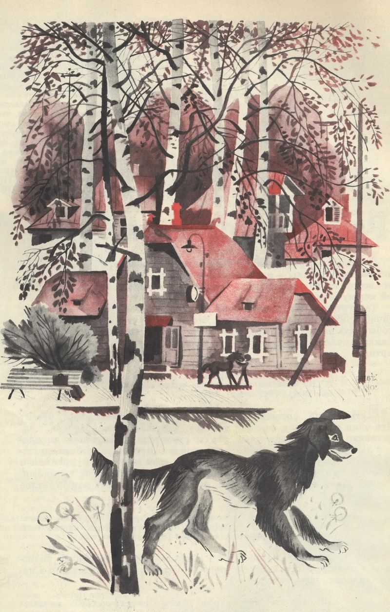 Из-за бугра пришел серый клочкастый пес. Ростом с козу. У него были полустоячие уши, толстые лапы и озабоченная морда. Он сунулся было в дверь, но увидел уборщицу и попятился, поджав похожий на веер хвост. Улизнув от двери, пес принял независимый вид и деловито оглянулся. Тут он заметил мальчика.