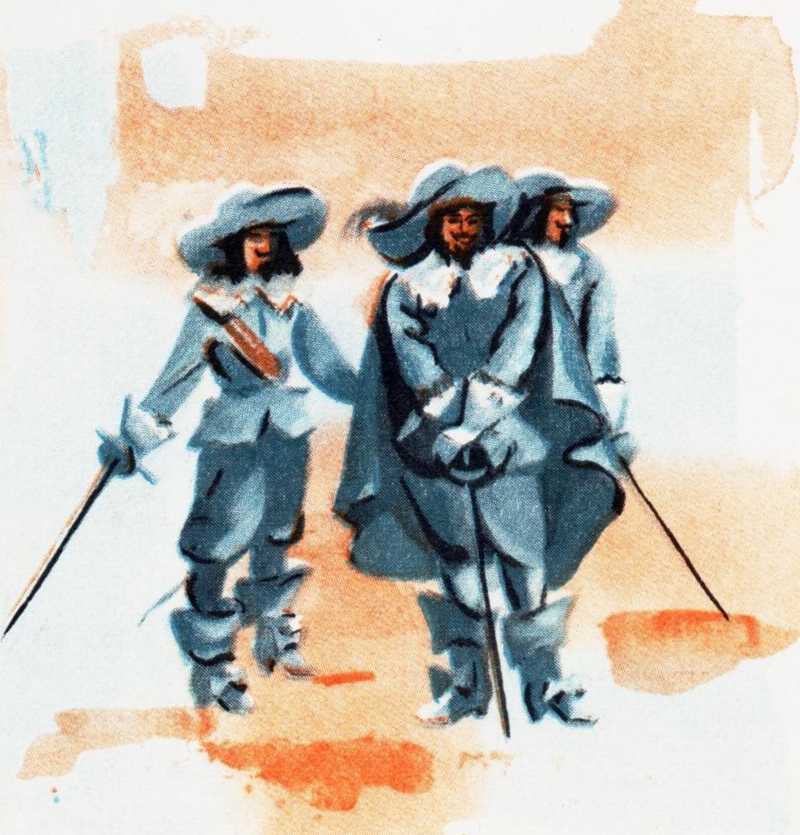 Через полминуты господа мушкетеры убедились, что проволочная шпага — совсем нешуточное оружие. От полного конфуза их спасло только нашествие кардинальского патруля. Вот тут-то мушкетеры и Андрюшка объединились и всыпали гвардейцам!