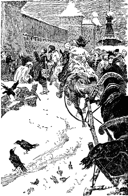 Боярин проехал гордый, надменный, высоко держа голову в драгоценной меховой шапке, сурово глядя на толпу. За ним следовала свита.