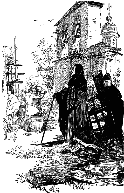 Мальчик не успел подойти к Герасиму: на стройке началось усиленное движение. Каменщики быстрее забегали с ношами кирпича, творившие замес проворнее замахали лопатами в большом чану. На стройку пожаловал настоятель монастыря игумен Паисий.