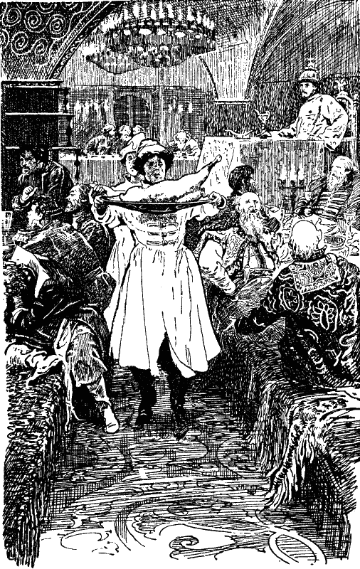 Воздух в Грановитой палате сделался душен, свечи едва горели среди испарений от питий и кушаний. В тумане мелькали раскрасневшиеся бородатые лица, расстегнутые шубы; под ноги попадали потерянные владельцами шапки. Ноги скользили по лужам от пролитого вина и меда…