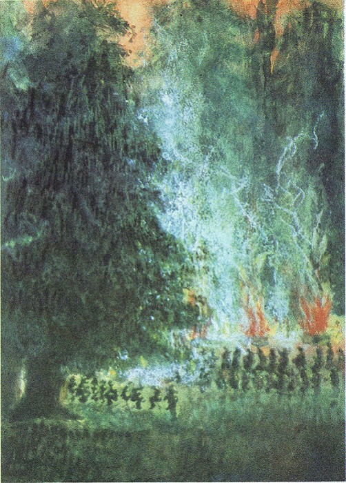 Рисунки к «Цепи». Наводнение кончилось, вода сошла.