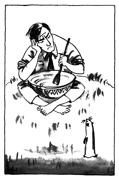 Но это ещё не беда. Беда пришла в виде миски. Какой-то индус или буддист продал папе поющую чашу. Папа теперь сидит у палатки и пялится на неё, не понимая, как ему удалось заполучить эту миску с пестиком. Но уж если деньги заплачены, не пропадать же добру. Папа взял похожую на толкушку деревяшечку и стал водить по краю чаши. Ну вот, у кризиса появился звук! Лёхин суслик в панике юркнул в нору. Соседи, что дымили на нас своим костром, быстро залили огонь и куда-то усвистали. Лёшка рассказал, что если чистота звука спустится до очень низкой, то человек может запаниковать и броситься с корабля в море или уйти в тундру в сторону Полярного сияния. Хотя этот самый инфразвук ухом не слышен. Я стала оглядываться в поисках Полярного сияния.