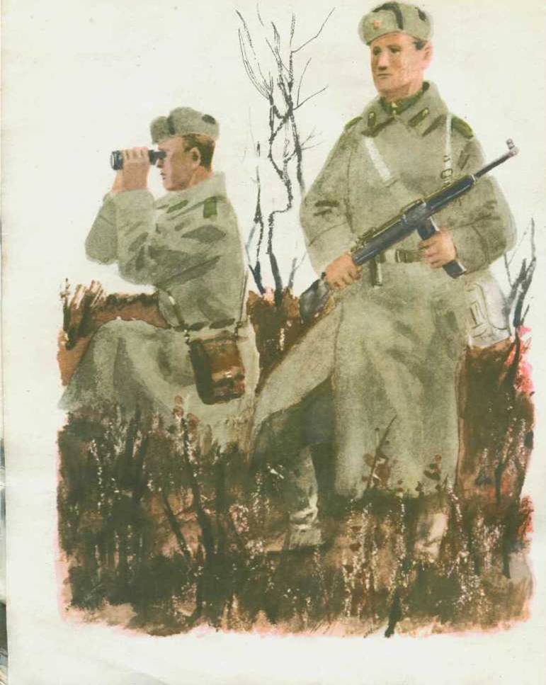 Прочти же эту книжку, разгляди картинки и запомни, какое важное и славное дело — защита Родины. Только не лёгкое это дело. Надо сильным быть, чтобы не устать. Смелым — чтобы не испугаться. И умелым нужно стать — чтобы знать хорошо, как с оружием обращаться. Расти, дружок, и ты таким!