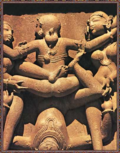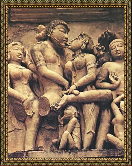 II. 25. Мужчина на коленях, женщина на четвереньках спиной к нему, раздвинув ноги, ложится вперед ничком. Мужчина обеими руками поднимает ее вверх к себе в исходное положение, женщина опять ложится вперед ничком, в такт движения члена мужчины.