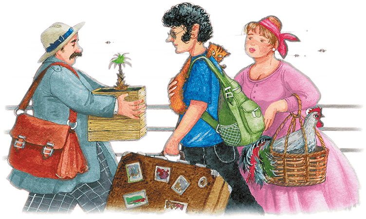 Некоторые электрички останавливались у станции, из них выходили пассажиры. Они тоже приносили с собой не только запахи дальних мест, но и предметы. Один тащил перед животом деревянный ящик с землёй, из неё росла пальма – крохотная, как помидорная рассада, но самая настоящая. Таська потом уверяла, что на ней видны были даже орехи или шишечки. Кто-то пронёс корзину с петухом. Прошёл человек с кошкой на плече. Один человек нёс под мышкой другого человека, длинного и в костюме, – это был манекен. Прошёл очень смешной пассажир в соломенной шляпе, с портфелем, весь запаренный и красный; когда он снял шляпу, чтобы обмахнуться, на лысине у него оказался горячий блин [1] .