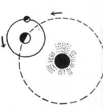 — Нет. Мы часто говорим по привычке «видимое движение небесного свода» или «солнце всходит и заходит», потому что в старину действительно думали, что Солнце вращается вокруг Земли, а Земля неподвижна. Но уже очень давно люди поняли, что это нам лишь кажется, что на самом деле вращается наша Земля. Она вращается вокруг своей оси, как волчок, только очень большой. Стань в комнате и повернись несколько раз на одном месте — и тебе покажется, что комната вертится вокруг тебя. Только не вертись долго, а то голова закружится.