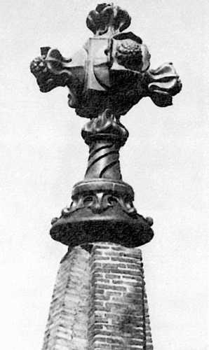В 1950 году были найдены хранившиеся за скульптурой святого Георгия чертежи и документы, касавшиеся строительства дома Ботинeс. Они были прикреплены к статуе с помощью короткого и толстого копья-дракона, по виду больше напоминавшего варана. Скульптурная группа была выполнена по рисунку близкого друга Гауди, скульптора Лоренцо Матамалы.