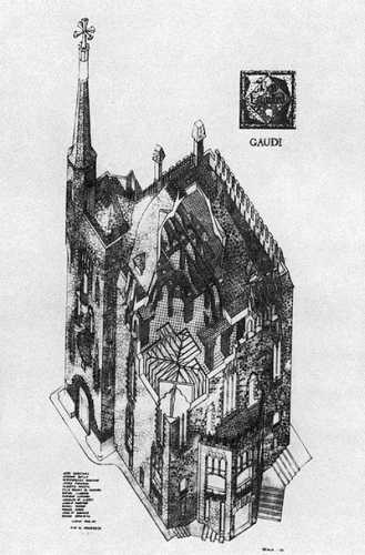 Особенного внимания в конструкции Бельесгуарда заслуживает спроектированная Гауди сложная система переходов, пронизывающих кровлю. Ее обвивает проходящая по спирали лестница, ведущая с крыши на самую высокую точку чердака, увенчанную небольшой террасой и огражденной высокими железными зубцами, сквозь которые открывается чудесный вид на горы и Барселону.