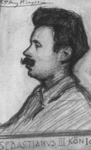 Осенью 1972 года Пикассо показывает своему другу Пьеру Дэксу большой рисунок, выполненный цветными карандашами. Это автопортрет, наводящий ужас, художник изображает себя гораздо более постаревшим, чем он выглядел на самом деле, но его огромные глаза открыты… навстречу смерти, собственной смерти. «Смотри! Это что-то новое, не похожее ни на что, когда-либо сделанное мною», — говорит он спокойным голосом. Он тщательно обдумывает, какие поправки он, возможно, сделает на этом портрете, оставаясь столь же невозмутимым, как матадор, готовящийся выйти на арену, чтобы встретиться со смертельной опасностью… Но его мужество было гораздо сильнее, так как в этом неотвратимом противостоянии он имел практически столько же шансов выпутаться, как и бык…