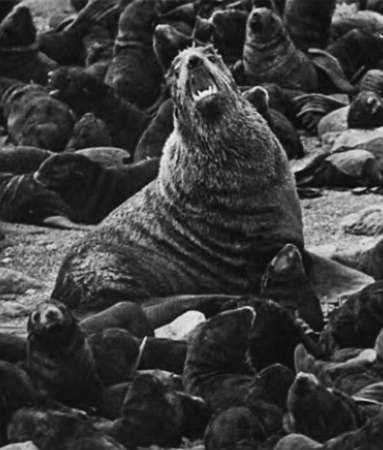 Еще ближе. Уже видим себя в оливковом сонном глазу крупного зверя. Затихаем, и стадо морских котов, не потревоженное, остается на берегу.