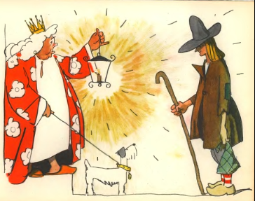 Вот раз прогуливается принцесса со всеми фрейлинами и вдруг слышит мелодию, что вызванивали бубенцы. Стала она на месте, а сама так вся и сияет, потому что она тоже умела наигрывать «Ах, мой милый Августин», — только эту мелодию и только одним пальцем.
