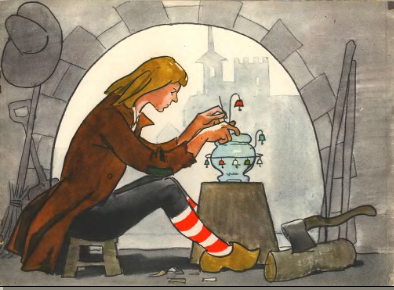 Так и определили принца свинопасом его величества и убогую каморку рядом со свинарником отвели, и там он должен был жить. Ну вот, просидел он целый день за работой и к вечеру сделал чудесный маленький горшочек. Весь увешан бубенцами горшочек, и когда в нем что-нибудь варится, бубенцы вызванивают старинную песенку: