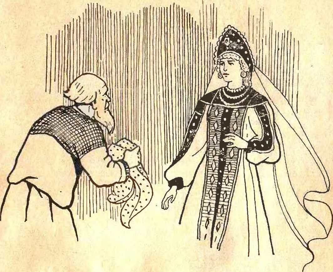 «Что ты сделал? —сказала она. —- Зачем возвратил ты Жизнь мне мою? Жених мой, Иван царевич прекрасный, Бросил меня, и я им забыта». — «Иван твой царевич ?Кенится нынче. Уж свадебный пир приготовлен, и гости Съехались все». Заплакала горько Марья царевна;