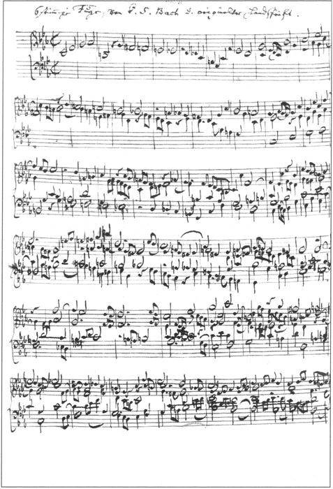 Начало шестиголосной фуги из «Музыкального приношения». Автограф И.-С. Баха