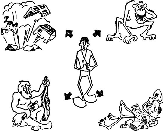 Для оценки величины l Хорнер вводит пять гипотез развития цивилизаций и произвольно приписывает каждой определенную вероятность ее осуществления. (Вероятность того или иного события можно определить как отношение случаев, благоприятствующих данному событию, к общему числу случаев. Например, рассмотрим такую картину. Из 100 научно-популярных книг только 5 получили общее признание и оценку «увлекательные». Если взять первую попавшуюся из этих 100, то вероятность увлечься ею составит: