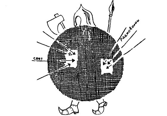 Но в этих доспехах есть две щели. Через одну свободно проникают радиоволны, через другую свет. Эти два «окна» и соединяют нас со вселенной. Через световое окно поступает солнечный свет и свет звезд. Этим окном пользуются астрономы. Их инструменты — глаз, бинокль, телескоп, фотоаппарат и др.