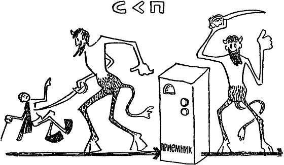 О. Подожди. В межзвездных просторах сигнал слабеет, худеет. Да еще «черти» примешивают к нему свое вредное зелье — помехи. Вот это и получает машина X.