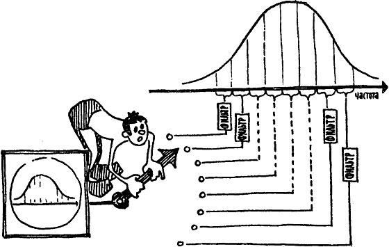 Таким образом, мы приходим к выводу, что приемное устройство должно вести одновременно наблюдение за обеими сторонами медали — временной и спектральной. Это должен быть гибрид из обычного приемника и спектрографа. Некоторые элементы у них могут быть общие.