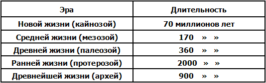 Но куда затерялся еще один миллиард лет в истории Земли? Ведь если сложить цифры в нашей табличке, то получим только 3,5 миллиарда. Он сознательно опущен. Самый первый миллиард ушел на естественное затухание бушевавшей огненной стихии. Ни о какой жизни еще не могло быть и речи.