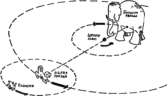 Очень образно обрисовал двойные звезды наш известный астроном Б. А. Воронцов-Вельяминов, школьным учебником которого я так плохо (да и многие из читателей, наверное, тоже) воспользовался в свое время: «Среди них мы встречаем такие пары, которые напоминают двух близнецов, настолько составляющие их звезды похожи во всем друг на друга. Встречаются пары звезд, похожие и на карикатуру, где неразлучны между собой слон и моська. Обычно в таких случаях слон — огромная, яркая, но холодная и красная звезда, а моська — его спутник — маленькая, слабенькая, но горячая и голубоватая.