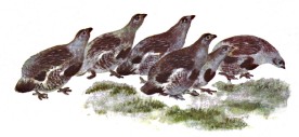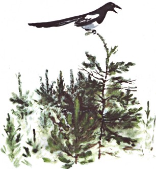 Взлетела сорока на ёлку и видит – подкрадывается к куропаткам зверь.