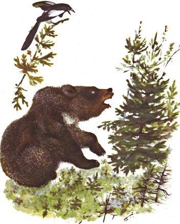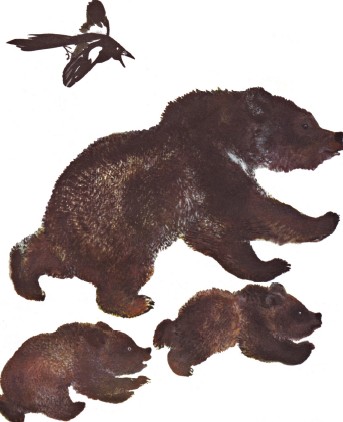 Мишка – из лужи, мишка – с рябинки и поскакали в чащу, где погуще, пока сорока от них не отвязалась.